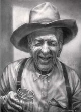 Cowboy shirt, faded, not worn ironically. Khaki shorts showing the white scars of his knee surgeries, and clean white socks pulled up the calf. Straw fedora set in the empty seat next to him. I drank him in with the longing of a GI curled on his bunk with that famous pin up of Betty Grable.